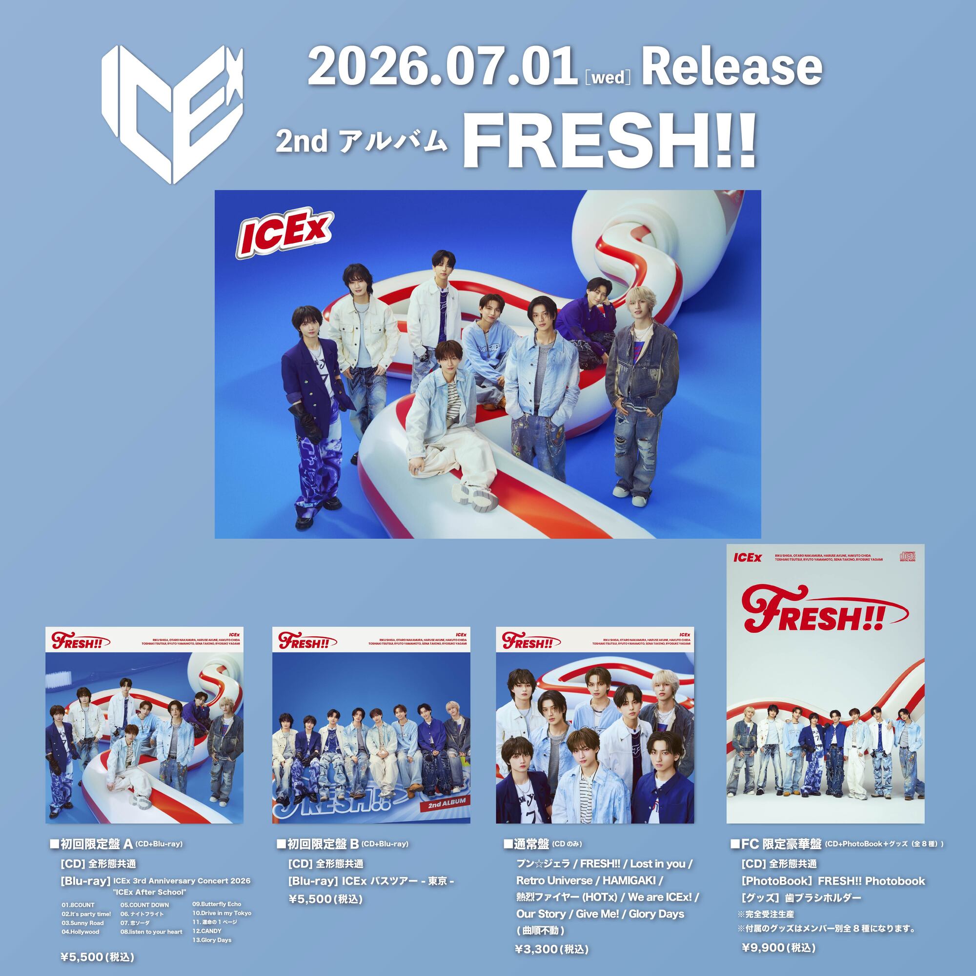 初回限定盤AのBlu-rayには、2026年3月に開催された『ICEx 3rd Anniversary Concert 2026 "ICEx After School"』のライブ映像から全13曲を収録!