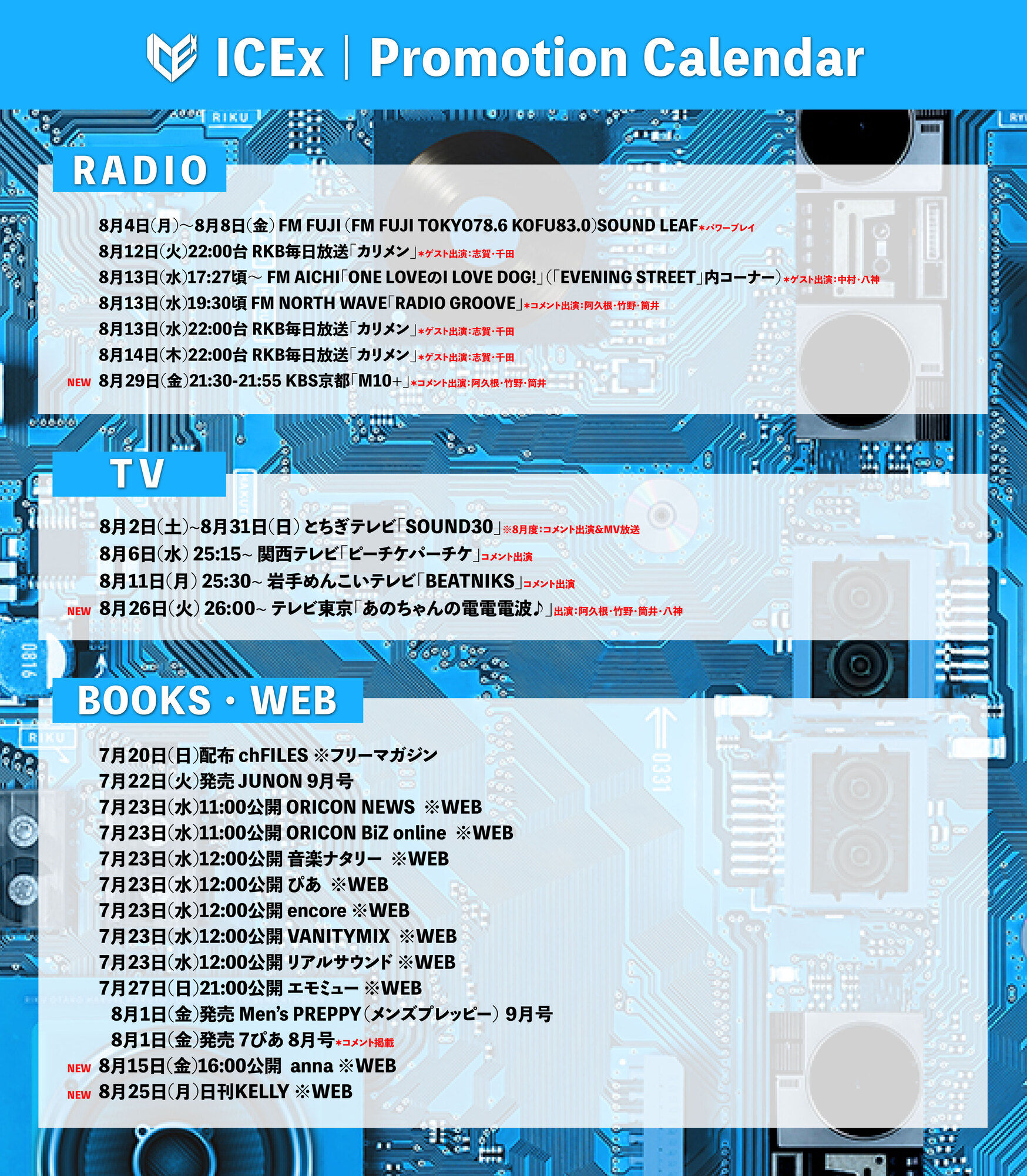 『ICExの週末クールダウン』でおなじみのFM FUJIにて、ICEx「インストール」が8/4(月)~8/8(金)までパワープレイされます。ぜひお聞きください!